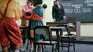 Crazy teens Aften Opal, Eliza Eves, Lily Lou, and Ava Sinclaire go wild with each other while in detention