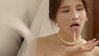 Lovely Asian girl with big natural tits enjoys a slippery oil sex session
