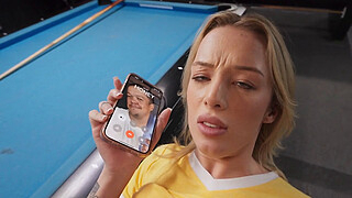 Big-ass blonde chick gets fucked while her boyfriend calls her