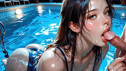 CUTE VERY SEXY WOMAN SUCKING COCK IN THE POOL GENERATED BY AI
