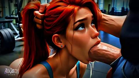 Sweaty Redhead Slut: Hardcore Gym Sex & Deepthroat Workout (4K AI)