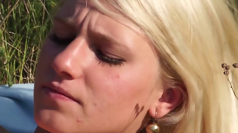 Blonde with a shaved hole is going to let him TAKE HER
