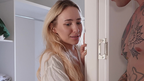 Stepsiblings end up fucking on the sofa after realizing they were alone at home