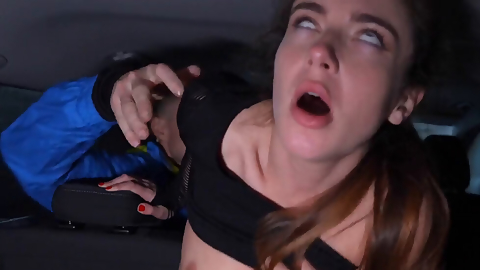 Elegant stepmom in stockings and heels teases her stepson on a car ride