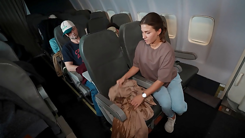 While the others are napping she orgasms on the plane