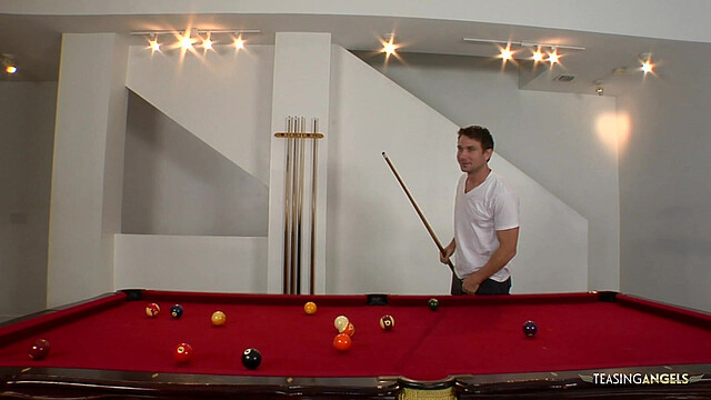 Playing pool must wait since the blonde chick craves a naughty threesome with the guys